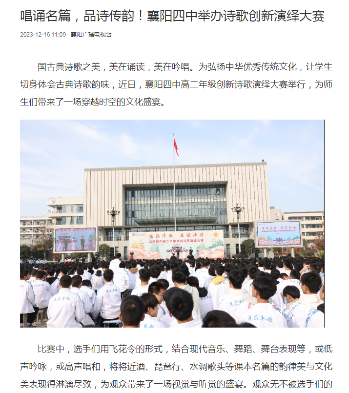 唱诵名篇,品诗传韵!襄阳四中举办诗歌创新演绎大赛